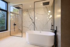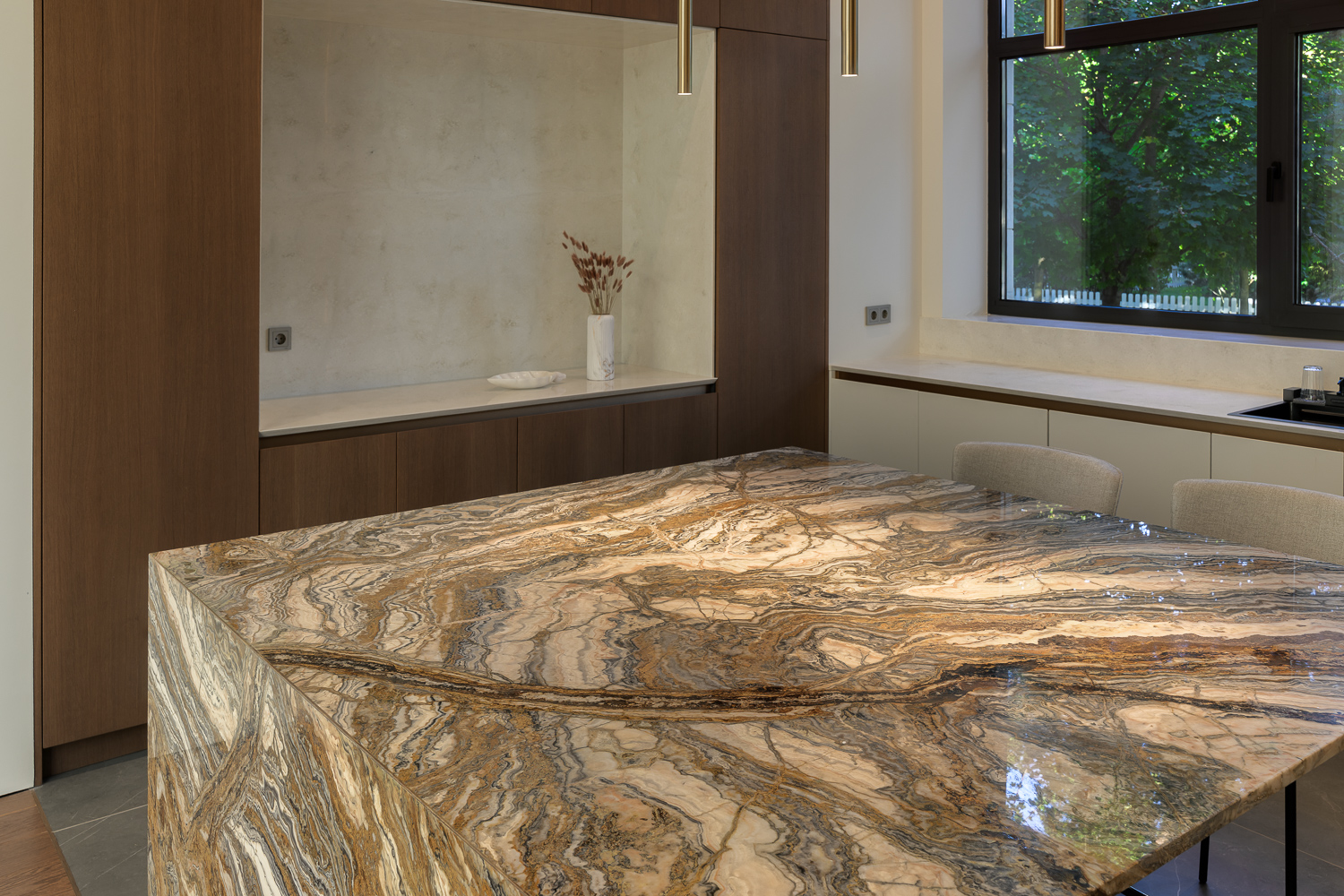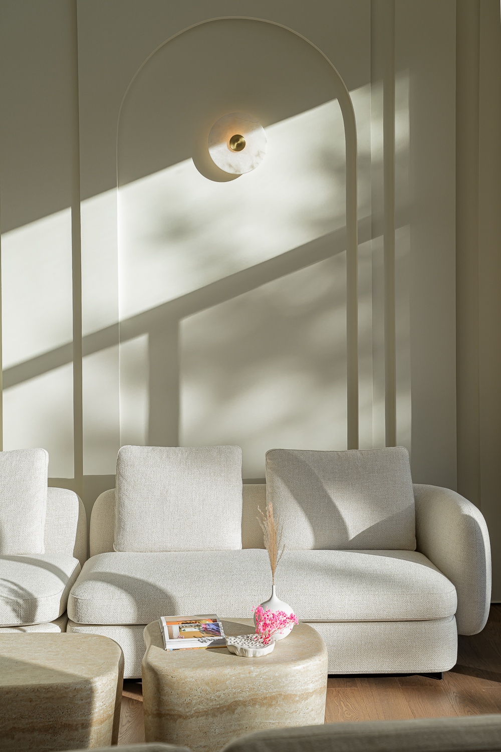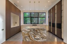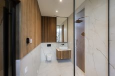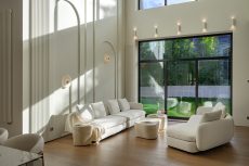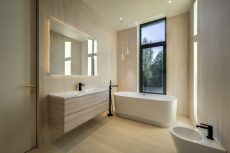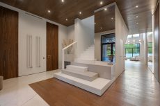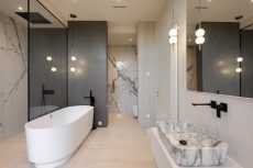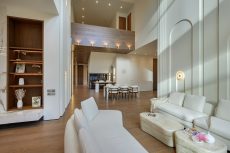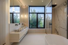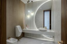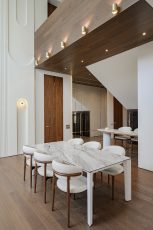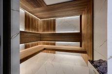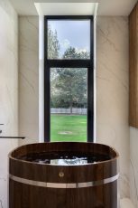 Приватная зона: мастер сьют 80 м2 (спальня, две гардеробных 18 и 14 м2, санузел), три детских сьюта площадью 55, 55 и 44 м2 (четкое зонирование, выделяющее кабинет-игровую-гардеробную, детскую и полноценный санузел с окном, ванной, душевой, умывальником, унитазом и биде), прачечная.