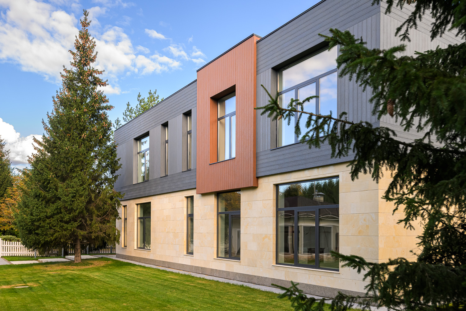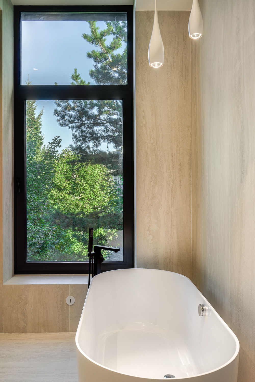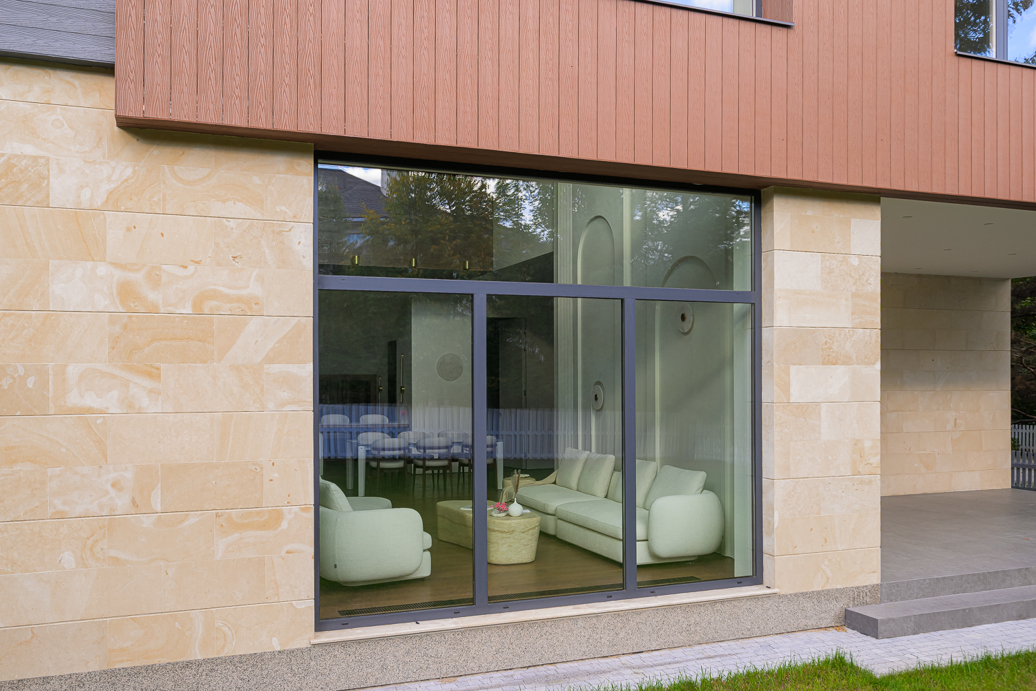 Ощущение пространства в доме обеспечивает большая площадь остекления и высота потолков в комнатах от 3,5 до 7,2 м, а также великолепные виды из окон на все 4 стороны.